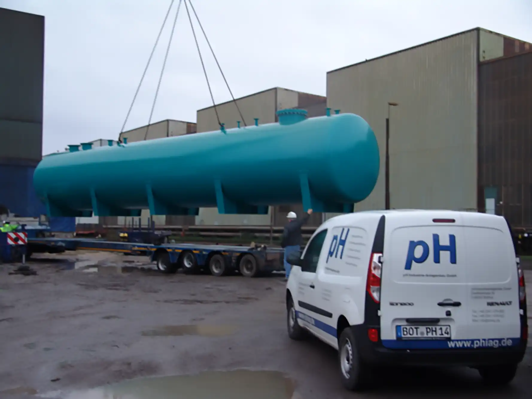 pHIAG realisierte 2022 den Neubau und die Einbindung von Behältern für Alt-Beize mit einem Volumen von 2 x 22 m³. Bei aggressiven Medien wie Beize sind Sicherheit und Materialexpertise das A und O. Wir haben für eine reibungslose Einbindung in den laufenden Prozess gesorgt. Handfeste Montagepower aus dem Revier für die Stahlindustrie – wir bauen Lösungen, die halten. Ehrlich, direkt und absolut verlässlich.